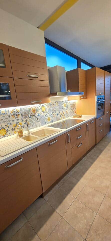 Chaise haute pour enfant, Cafetière, Ustensiles de cuisine, Lave-vaisselle, Cuisinière, Micro-ondes, Four, Réfrigérateur, Grille-pain